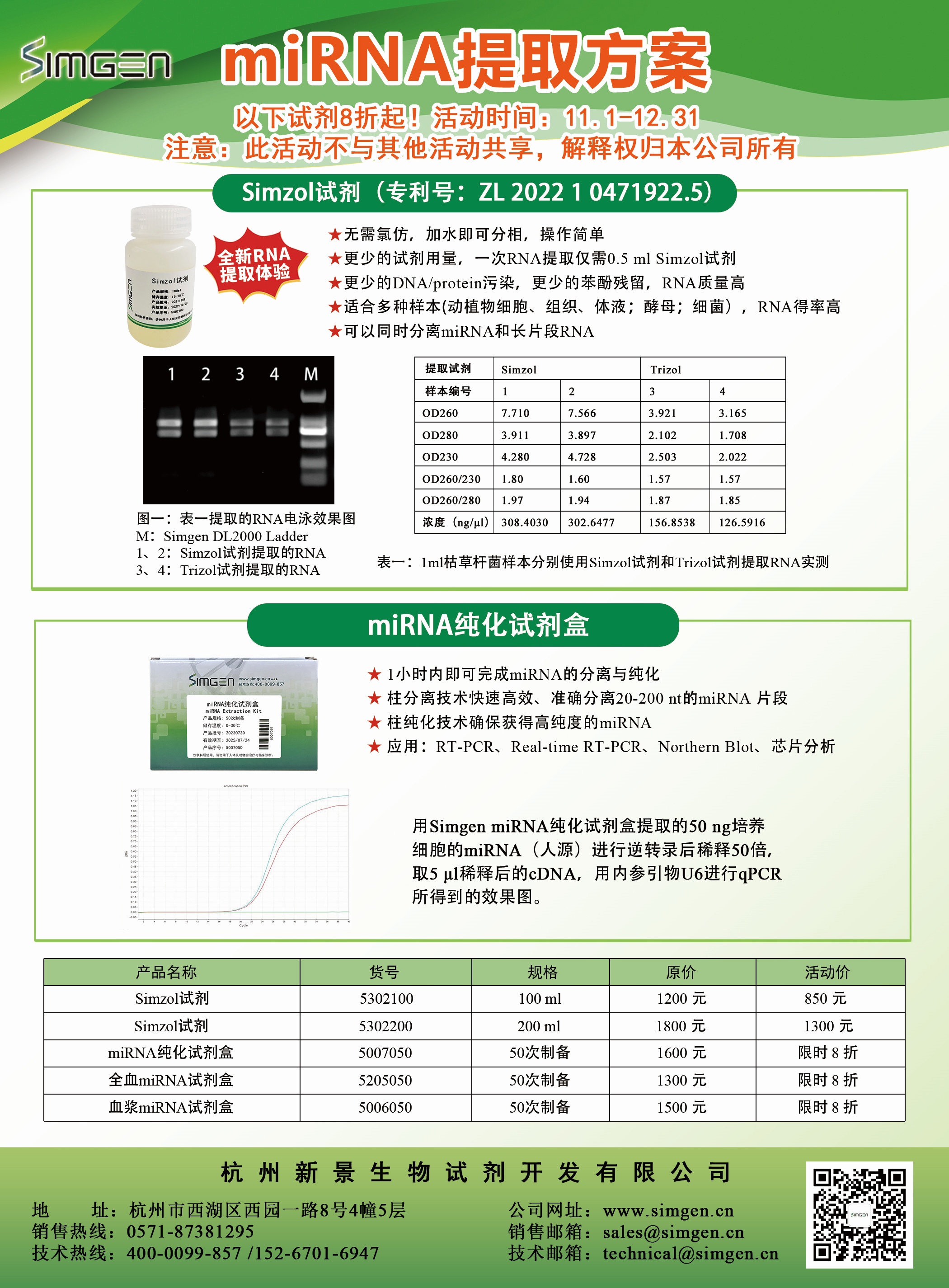 该产品适合血浆、血清中分离纯化miRNA 查看产品