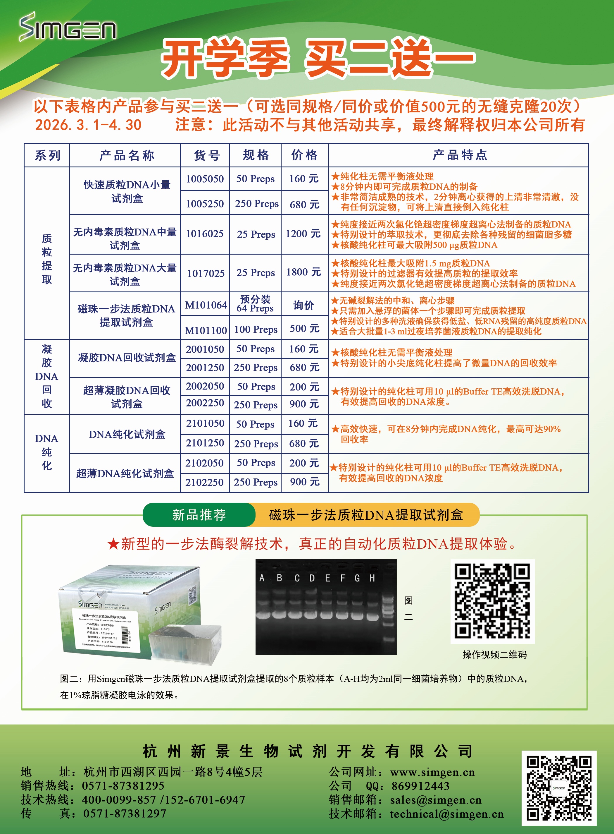 一步裂解:一步即可完成传统碱裂解法中的菌体重悬、裂解和中和三个步骤操作简单:只需将收集的菌体重悬后加入到分装好试剂的深孔板中,即可完全由仪器自动完成质粒分离、纯化及洗脱的全部工作特别设计的多种洗液确保获得低盐残留、低RNA残留的高纯度质粒DNA适合大批量1-3 ml过夜培养菌液质粒DNA的同步提取纯化应用:测序、限制性酶切、连 查看产品
