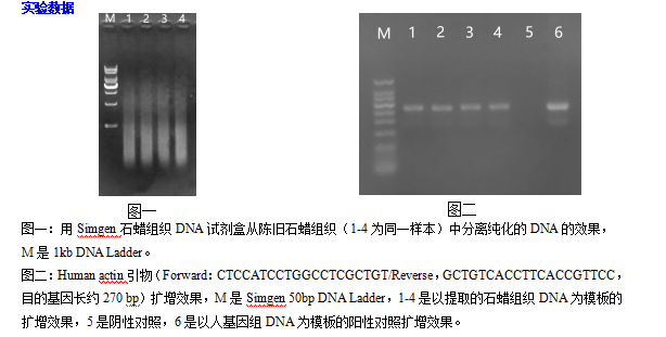石蜡组织样本经二甲苯溶解石蜡后,再经蛋白酶K消化释放DNA,柱纯化核酸技术彻底清除残留在纯化柱上的杂质及PCR抑制物后,用Buffer TE洗脱的DNA可立即用于各种分子生物学实验。
